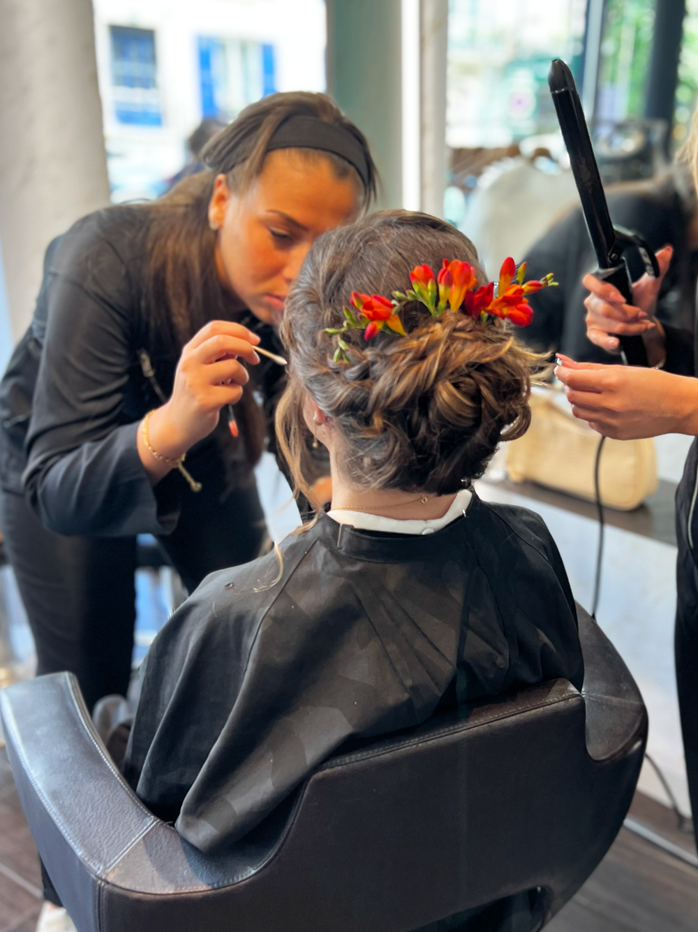 Protocole avec les produits COLOR WOW) + Coiffage (travaillé avec brosses, boucles sur champ ou repris au fer)